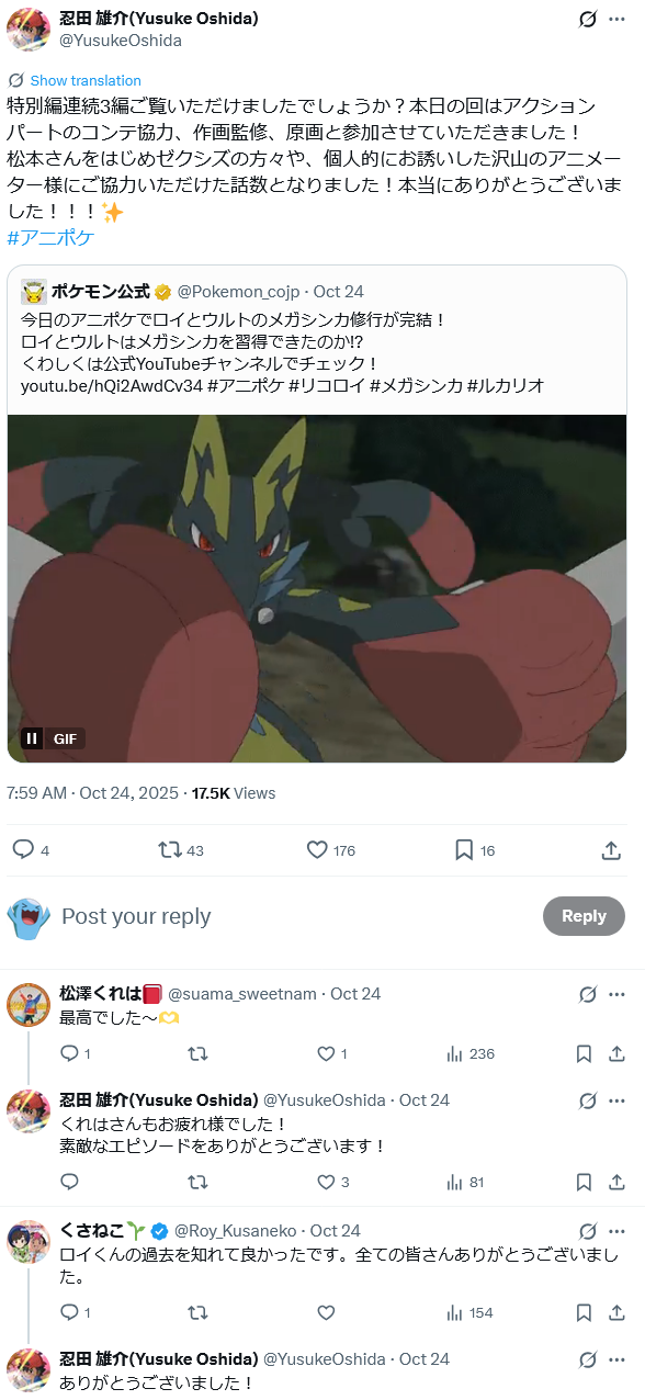 | Animation Director | 忍田雄介 (Yusuke Oshida) | |