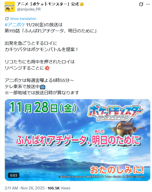 The official Japanese Anime PR X account also posted the question and the answer on November 29th / 30th, 2025.
