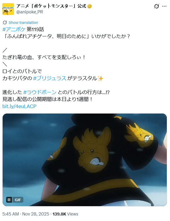 Briar gathers Liko and the others to tell them about Terapagos' secrets and her theory for how the Rakulium can be purified. After hearing what she has to say, Roy wants to leave Blueberry Academy immediately. Seeing this, Kakitsubata suggests they have a Pokémon battle first, and while Roy is initially hesistant, Liko and the others successfully encourage him to engage in this rematch!!