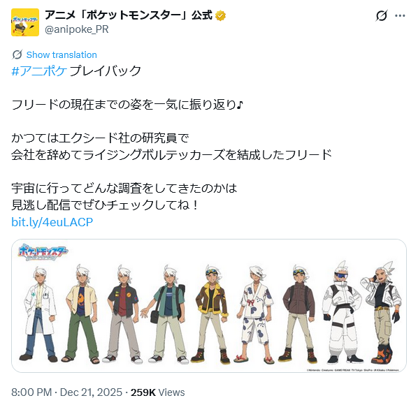 posted a Pokémon Anime Playback on December 22nd, 2025.