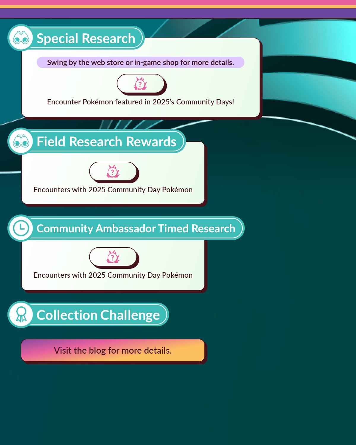 Field Research leading to encounters with Pokémon featured in previous Community Days in 2025 will be available.
