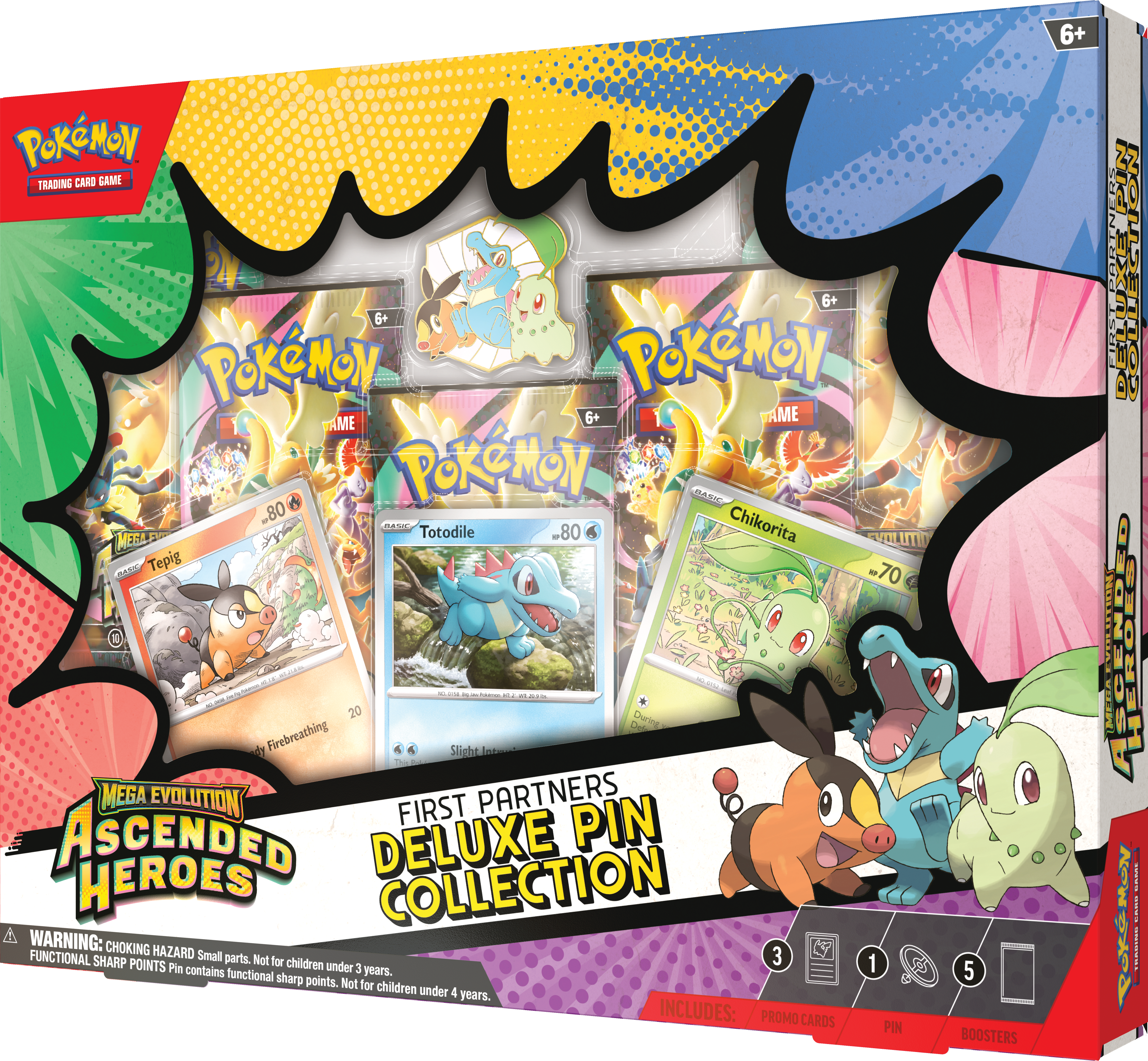 The Pokémon TCG: Mega Evolution—Ascended Heroes First Partners Deluxe Pin Collection will be available on March 20, 2026, at the Pokémon Center and where Pokémon TCG products are sold.