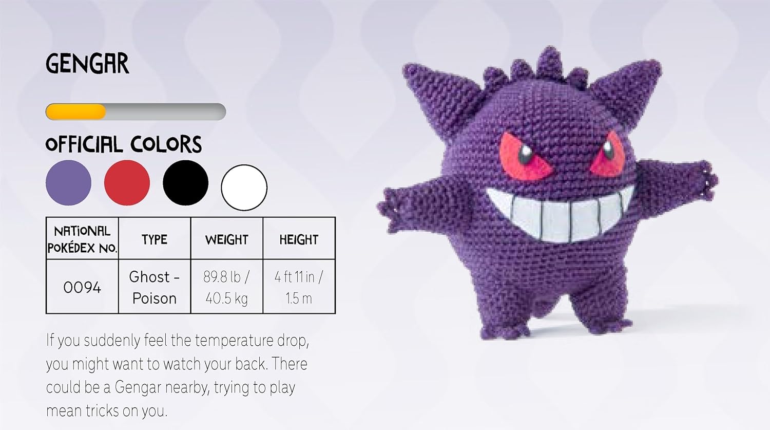 With clear, easy to follow, step-by-step instructions, this kit gives you not just the information that you need to make your very own Gengar amigurumi - Japanese stuffed toy - but also all the yarns and materials. It will take anyone - even a beginner - through the process right from the first steps, all the way through to stuffing and assembly. When you've finished, you'll have your very own Gengar.