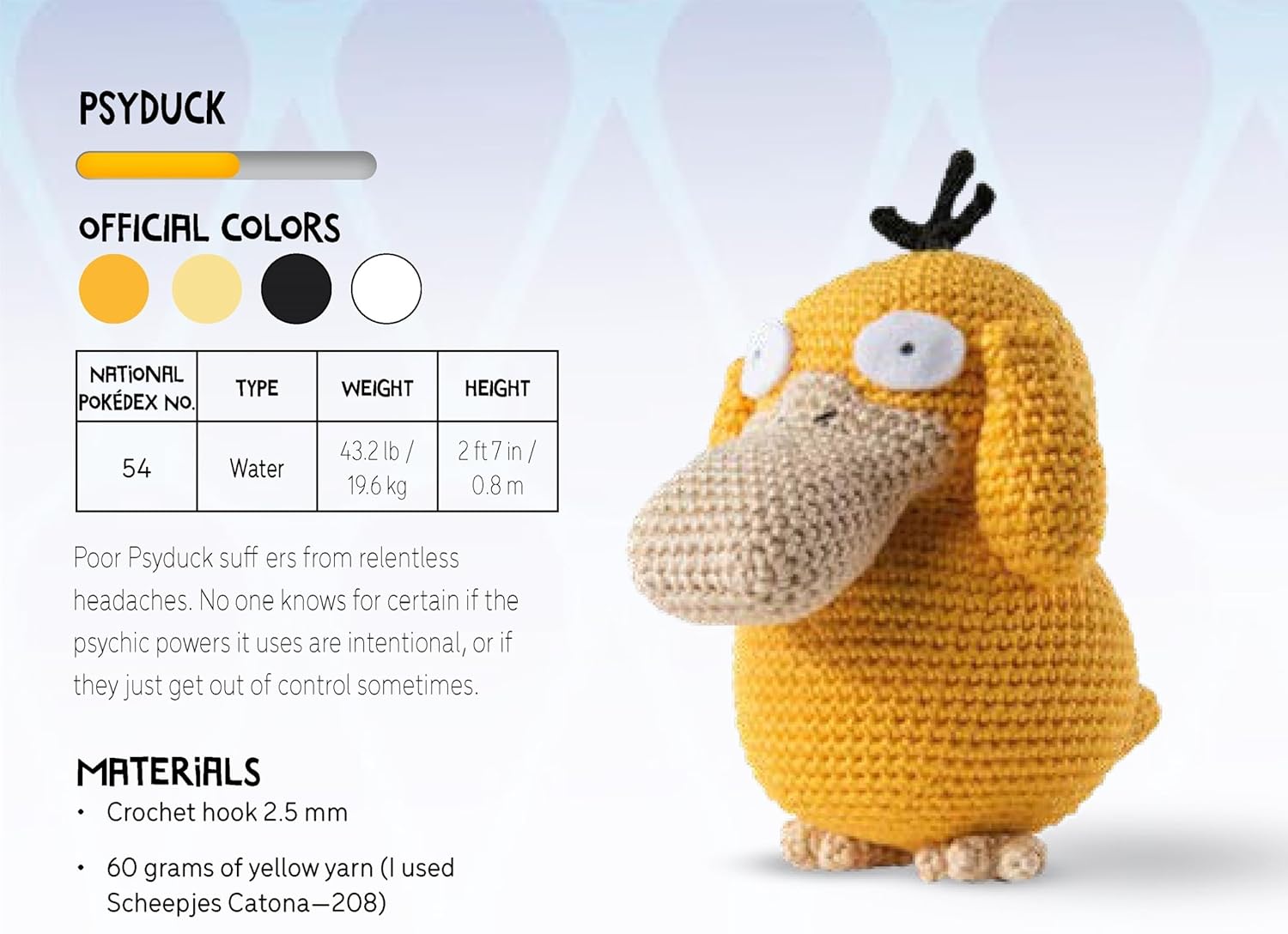 That's not all! In addition, the accompanying book contains the details you'll need to crochet five other popular Pokémon amigurumi: Wobbuffet, Dragonite, Psyduck, Bulbasaur, Vaporeon. But beware! Making these plushies is so much fun - the more you make, the more you'll want. And so will everyone else who sees them!