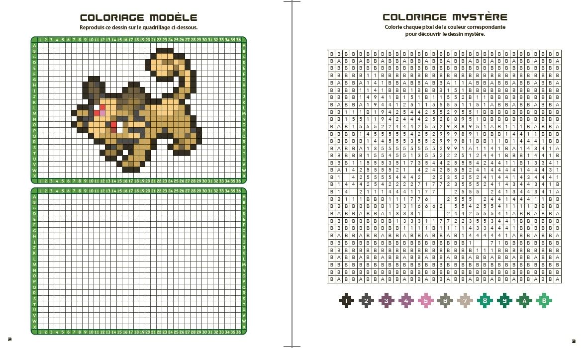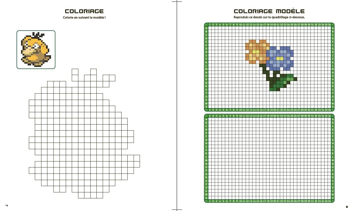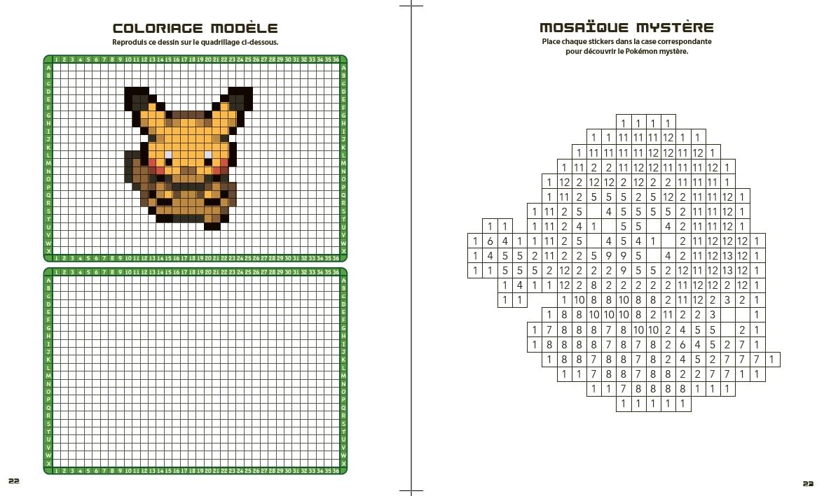 Dans ce livre, des Pokémon en Pixel Art sont à colorier, de Pikachu à Poussacha en passant par Chochodile et Coiffeton ! Entre coloriages mystères à compléter, modèles de Pokémon à reproduire et tableaux mosaïques à remplir de stickers, chaque page est une nouvelle découverte !