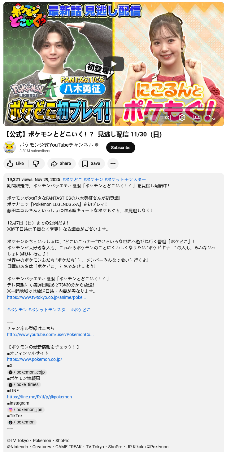 posted a reminder on November 30th, 2025 that this episode was available to watch on the official Japanese YouTube channel.