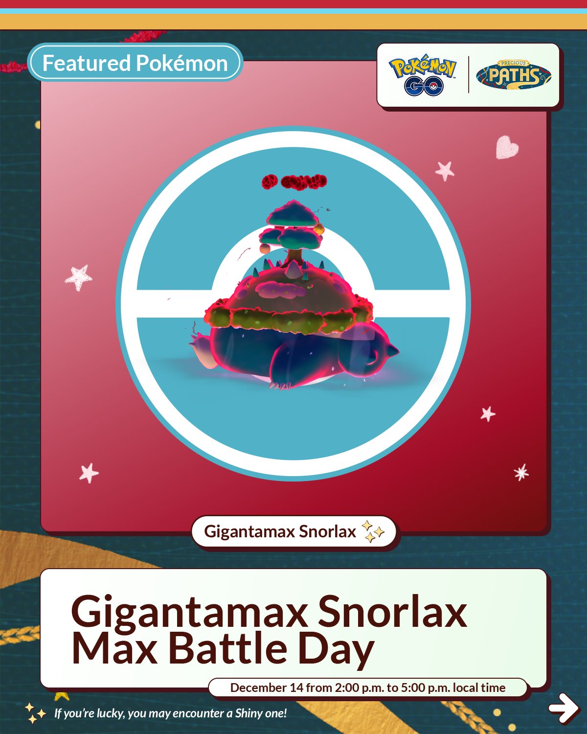 Gigantamax Snorlax Max Battle Day - Sunday, December 14, 2025, from 2:00 p.m. to 5:00 p.m. local time