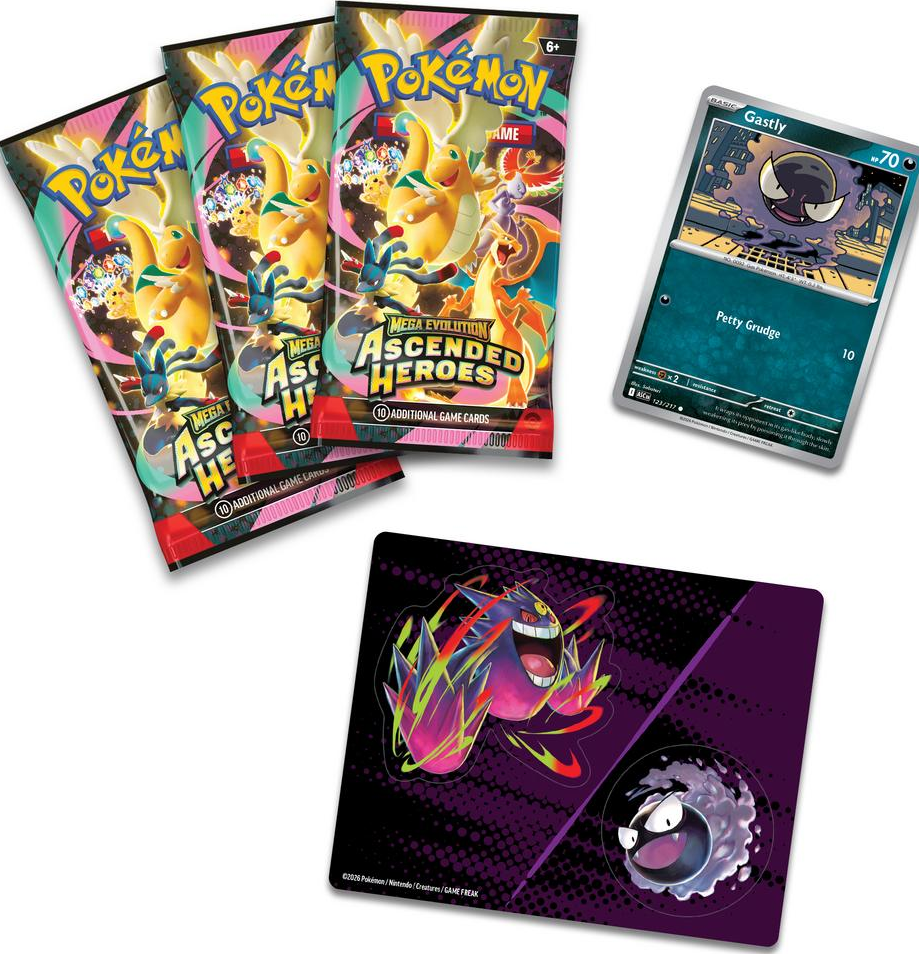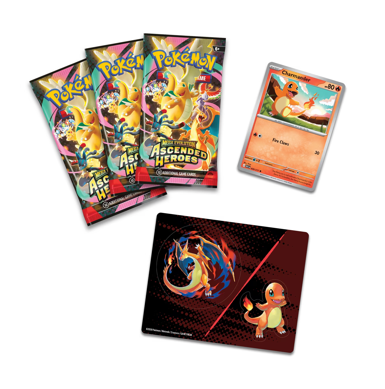 Pokémon from the Kanto region are ascending to greatness—as both promo cards and tech stickers! In this collection, you’ll find either Charmander or Gastly as a foil promo card, plus a sheet of tech stickers featuring Charmander and Mega Charizard Y or Gastly and Mega Gengar. Top it all off with even more Pokémon inside three booster packs from the mega-awesome Mega Evolution—Ascended Heroes expansion.