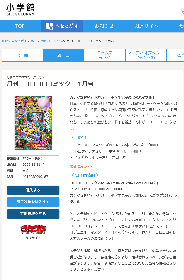 月刊コロコロコミック 2026年01月号